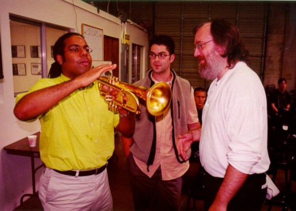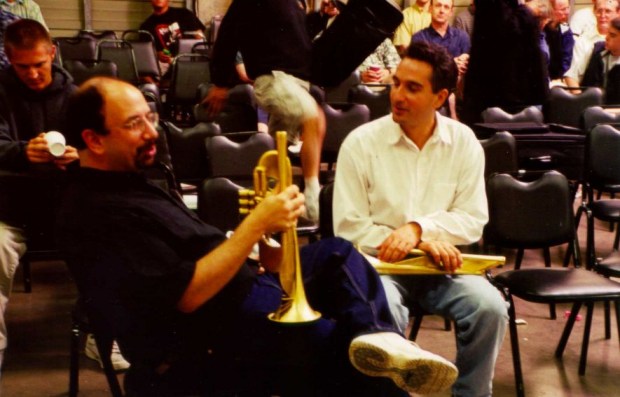 | Mark Isham and Charlie Schlueter compare notes between